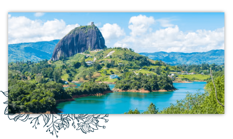 Tal vez uno de los lugares más visitados en todo Colombia. Guatapé es naturaleza, cultura y color. Es una experiencia única que te lleva a admirar el arte en cada zócalo plasmado en el pueblo, observar los habitantes de la zona, probar un café colombiano y apoyar la economía local. El lugar perfecto para conectarse con la naturaleza, cultura y diversión.