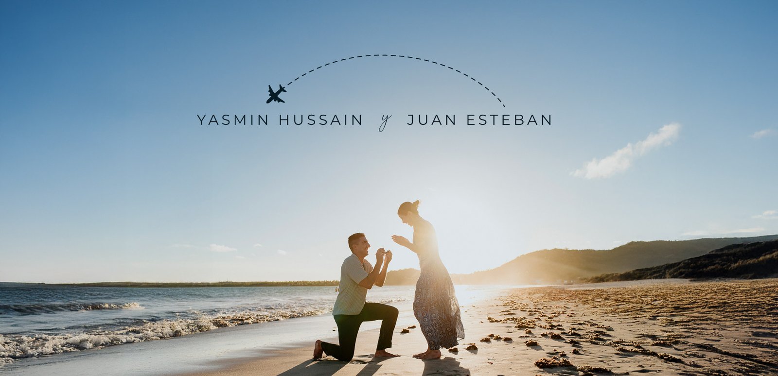 Después de tantos años de buscar el amor intensamente, nos encontramos cuando menos lo esperábamos, o mejor aun cuando ni lo estábamos buscando. Nos conocimos un viernes en San Francisco, en un lugar de minigolf, donde decidimos en la primera cita revelar nuestros lados competitivos, y a pesar de un novio que hablo mucho, y no la dejo hablar, hubo química suficiente para una segunda cita. Desde ese entonces comenzaron dos años llenos de muchos momentos lindos, y una relación que fue evolucionando naturalmente, sin forzar nada y sin afanes. Era como si a ambos, nos faltaba una pieza para completar nuestro rompecabezas, y en el uno y el otro la encontramos. Para ambos, fue una sensación nueva, una sensación que siempre buscábamos, pero hasta conocernos no sabíamos si realmente existía. Pero al dejar que el destino nos llevara por su camino, nos dimos cuenta que estábamos donde teníamos que estar, juntos. La aprobación de Charlie, nuestro Golden retriever, lo acabo de confirmar, y no dejo dudas de que esto sería un amor y una familia para un, para siempre. Por eso, un 30 de Diciembre decidimos decirle si a ese amor eterno, y continuar esa historia que comenzó aquella noche en San Francisco, donde Juanes y Yas, sin saberlo aún, comenzaban la historia del amor de sus vidas.